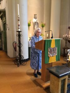 De medeparochianen hebben genoten van de manier waarop Jenny de lezingen en voorbeden heeft gedaan. Het is niet ‘zomaar’ lezen wat zij doet, Jenny verkondigt het Woord van de Heer, zij weet wat zij leest en het komt recht uit haar hart. Namens de parochie is er afgelopen zondag een intentie voor haar gebeden: Uit dankbaarheid voor wat zij als lectrice voor de parochie heeft betekend en Gods zegen over haar leven.