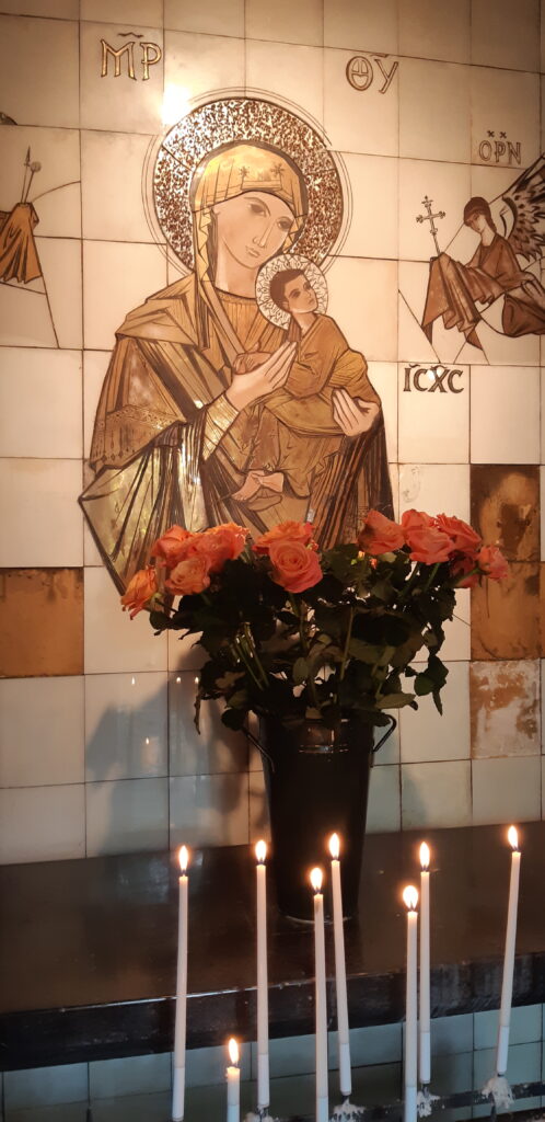 In de kapel zijn ook kaarsen te koop die thuis kunnen worden gebrand, waaronder noveenkaarsen met de beeltenis van onze ‘eigen’ Maria.