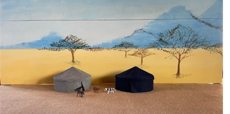 Zoals u ziet is er in de uitbeelding van het Adventsproject een tent bijgekomen. Dat is dankzij al diegenen die afgelopen week hebben bijgedragen in de collecte, overgemaakt via de bank en vooral door het weer onweerstaanbare haakwerk te kopen. Hierdoor zit nu € 195,00 in de kas ter ondersteuning van nomadenkinderen in India. Heel hartelijk dank daarvoor!